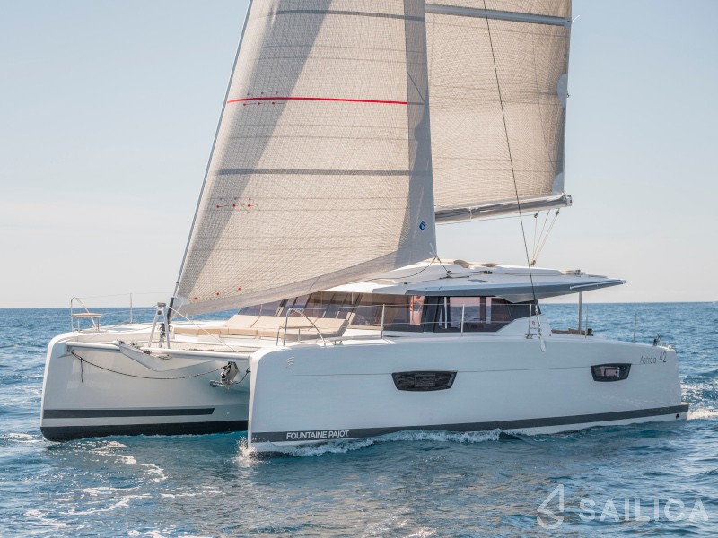 Astréa 42 Mouse Catamaran was produced in 2021, and is operated by the Angelina Yachtcharter charter company. This luxurious vessel can comfortably accommodate up to 12 people, it contains 6 cabins and 4 WC. For your convenience, Astréa 42 Mouse is equipped with an Bathing platform, Sink, Tridata, Windex, First aid kit and much more.