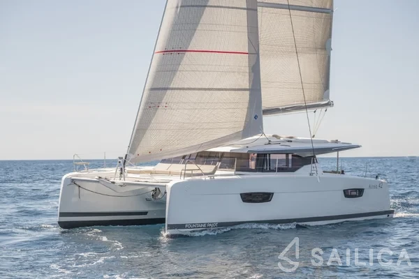 Astréa 42 CRAZY DIAMOND Catamaran was produced in 2023, and is operated by the Ultra Sailing charter company. This luxurious vessel can comfortably accommodate up to 8 people, it contains 4 cabins and 4 WC. For your convenience, Astréa 42 CRAZY DIAMOND is equipped with an Lazy bag, Holding tank, Microwave, Hot Water , Radar and much more.