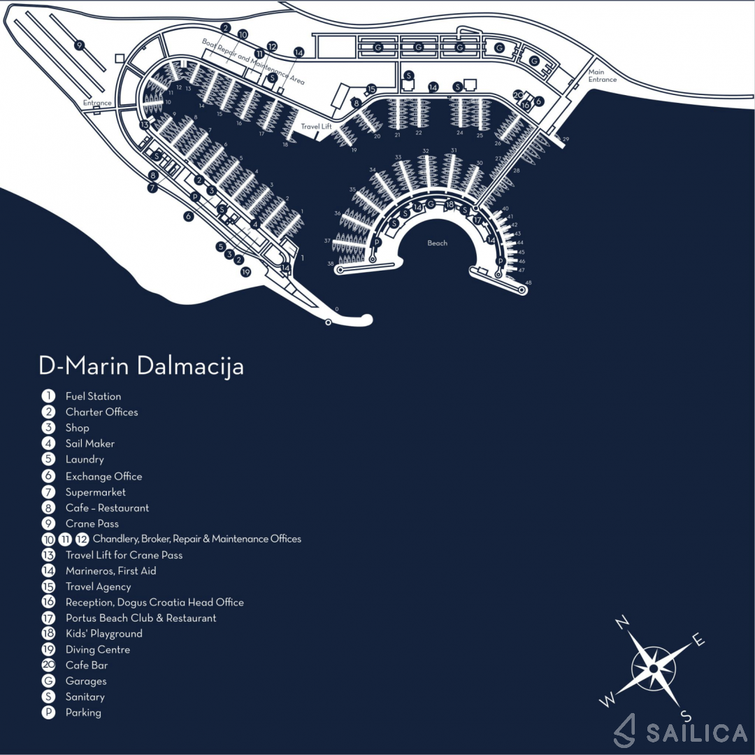 After completing your reservation of Astréa 42 Macho, you can make check-in and check out at the office of the charter company in SCT Marina Trogir, Croatia.