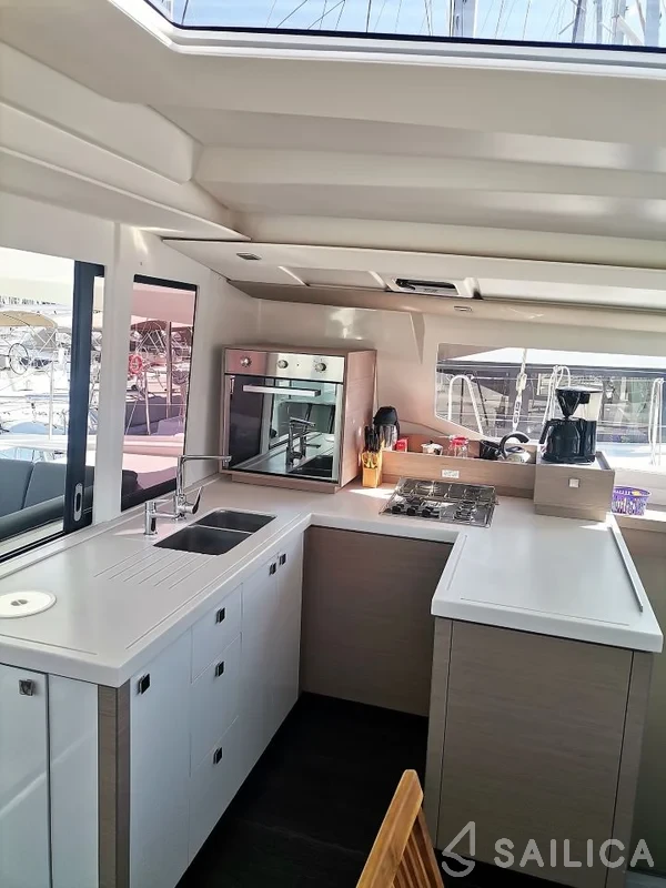 Astréa 42 Macho Catamaran was produced in 2021, and is operated by the Angelina Yachtcharter charter company. This luxurious vessel can comfortably accommodate up to 8 people, it contains 4 cabins and 4 WC. For your convenience, Astréa 42 Macho is equipped with an Lazy bag, Sink, Tridata, Shore Connection 220 V , Teak Cockpit and much more.