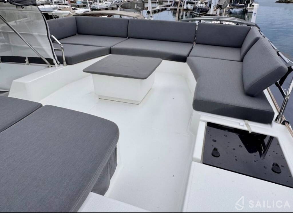 Aura 51 All Blue IV Catamaran was produced in 2023, and is operated by the Allblue Sailing charter company. This luxurious vessel can comfortably accommodate up to 14 people, it contains 7 cabins and 7 WC. For your convenience, Aura 51 All Blue IV is equipped with an Chart Plotter, Electric toilet, Solar panels, Electric winches, Bow thruster and much more.