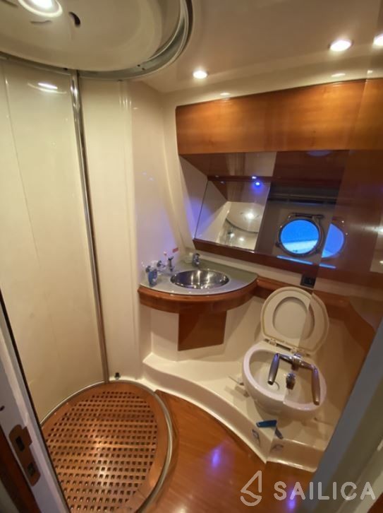 Azimut 50 Odisea has 3 cabins and can comfortably accommodate 6 people. It is conveniently equipped with 2 toilet (latrine),a Bathing platform, Sink, Radar , Oven, and Towels.