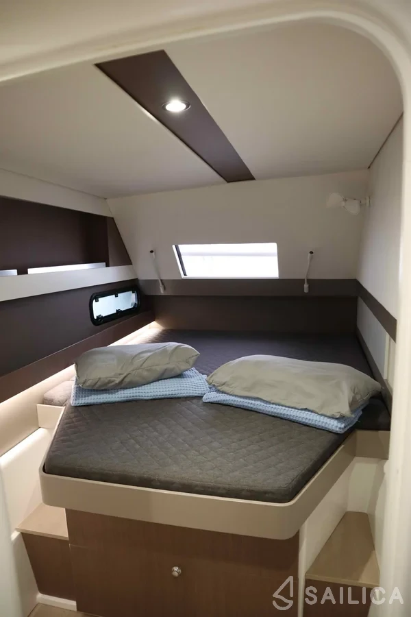 Bali 4.1 CLASS Catamaran was produced in 2020, and is operated by the Kiriacoulis charter company. This luxurious vessel can comfortably accommodate up to 8 people, it contains 4 cabins and 4 WC. For your convenience, Bali 4.1 CLASS is equipped with an GPS, Lazy bag, Hot Water , Safety equipment , Stove and much more.