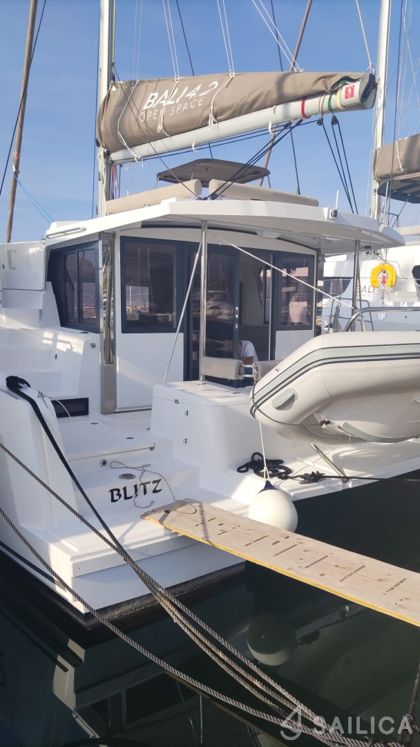 Bali 4.2 Blitz Catamaran was produced in 2022, and is operated by the World Wide Charter charter company. This luxurious vessel can comfortably accommodate up to 10 people, it contains 5 cabins and 4 WC. For your convenience, Bali 4.2 Blitz is equipped with an Lazy bag, Safety equipment , GPS Chartplotter, Electric WC, Dinghy with outboard engine and much more.