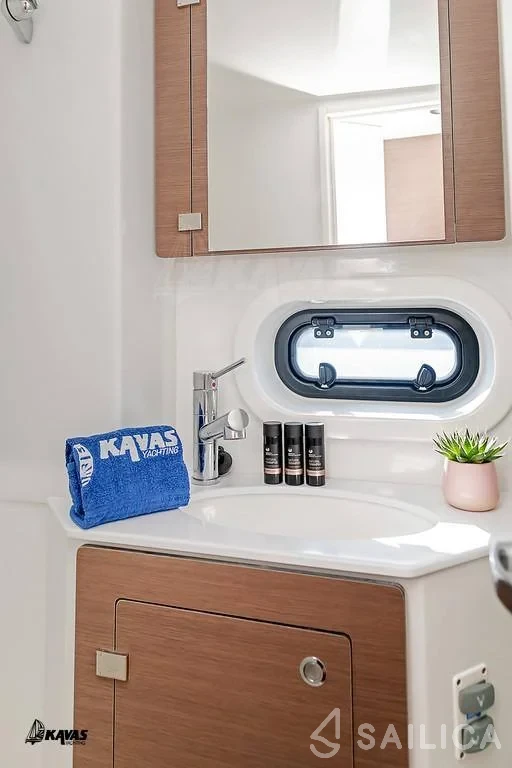 Bali 4.2 Kos 42.10 Catamaran was produced in 2024, and is operated by the Kavas Yachting charter company. This luxurious vessel can comfortably accommodate up to 8 people, it contains 4 cabins and 4 WC. For your convenience, Bali 4.2 Kos 42.10 is equipped with an GPS Chartplotter, Coffee machine, Navigation tools, Black Water Tank, Electric WC and much more.