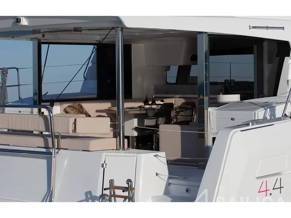 Bali 4.4 Sara Catamaran was produced in 2023, and is operated by the Aladar sail charter company. This luxurious vessel can comfortably accommodate up to 8 people, it contains 4 cabins and 4 WC. For your convenience, Bali 4.4 Sara is equipped with an Microwave, Hot Water , Wind instrument , GPS Chartplotter, Coffee machine and much more.