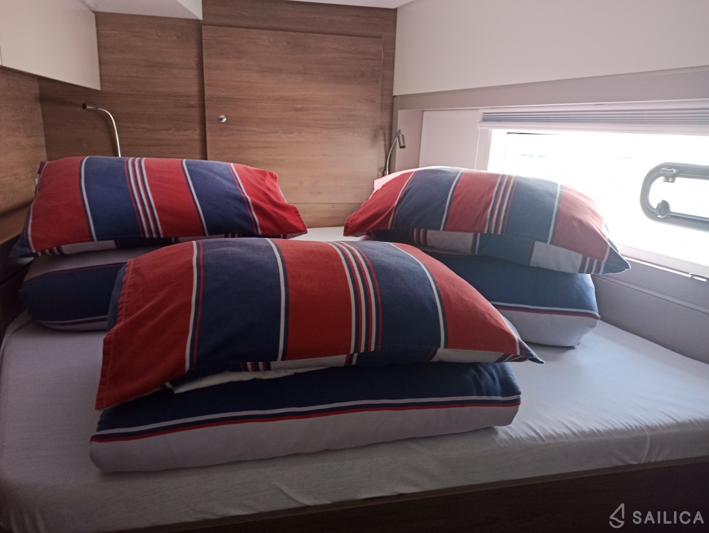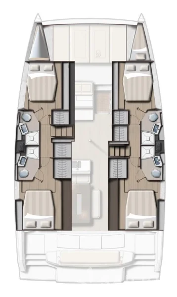 Bali 4.4 James Webb Catamaran was produced in 2022, and is operated by the Angelina Yachtcharter charter company. This luxurious vessel can comfortably accommodate up to 12 people, it contains 6 cabins and 4 WC. For your convenience, Bali 4.4 James Webb is equipped with an Tridata, Shore Connection 220 V , Emergency tiller, First aid kit, Life jackets and much more.