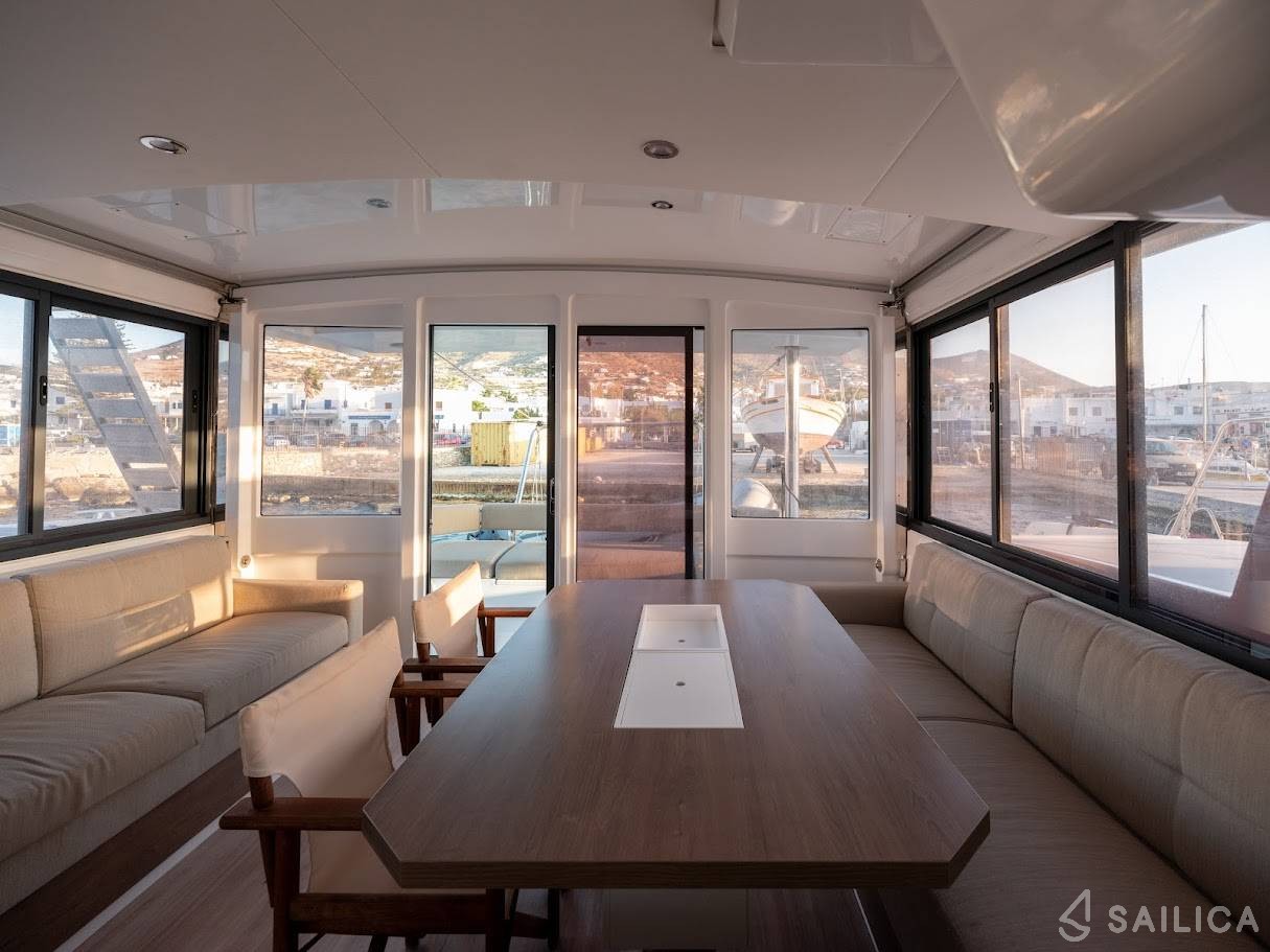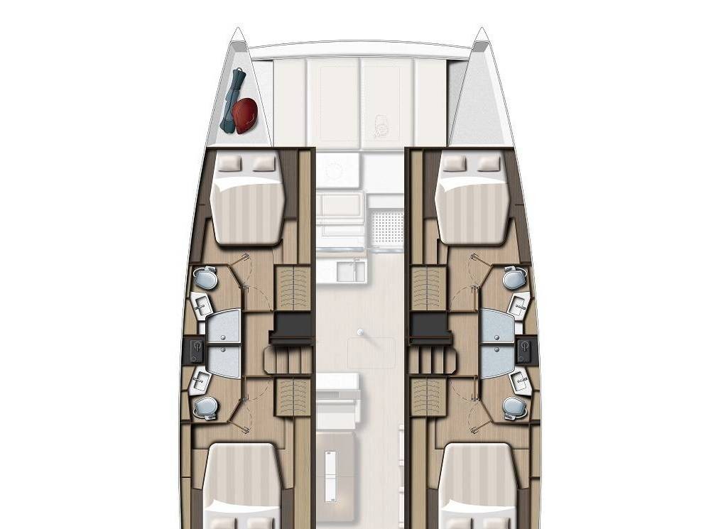 Bali 4.4 Gorgo Catamaran was produced in 2025, and is operated by the Fyly Yachting charter company. This luxurious vessel can comfortably accommodate up to 10 people, it contains 5 cabins and 5 WC. For your convenience, Bali 4.4 Gorgo is equipped with an Chart Plotter, Air condition, Coffee maker, Generator, Solar panels and much more.