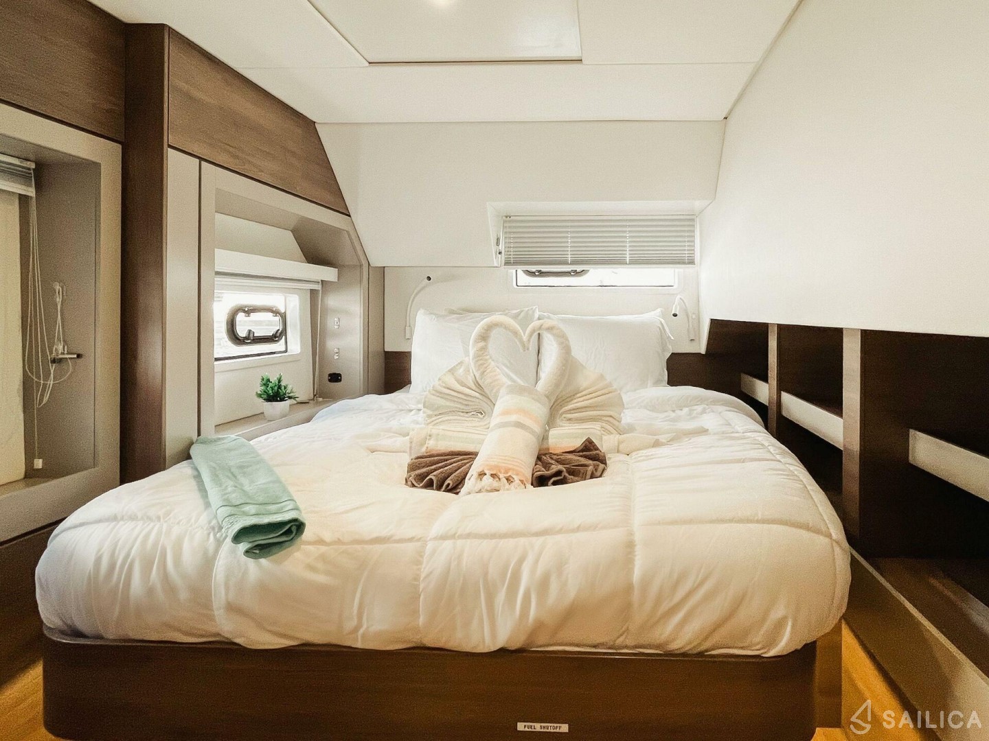 Bali 4.6 Cool Breeze - FF Catamaran was produced in 2023, and is operated by the Catamaran Company charter company. This luxurious vessel can comfortably accommodate up to 10 people, it contains 5 cabins and 5 WC. For your convenience, Bali 4.6 Cool Breeze - FF is equipped with an GPS, Lazy bag, Microwave, Navigation lights, Wind speed and much more.
