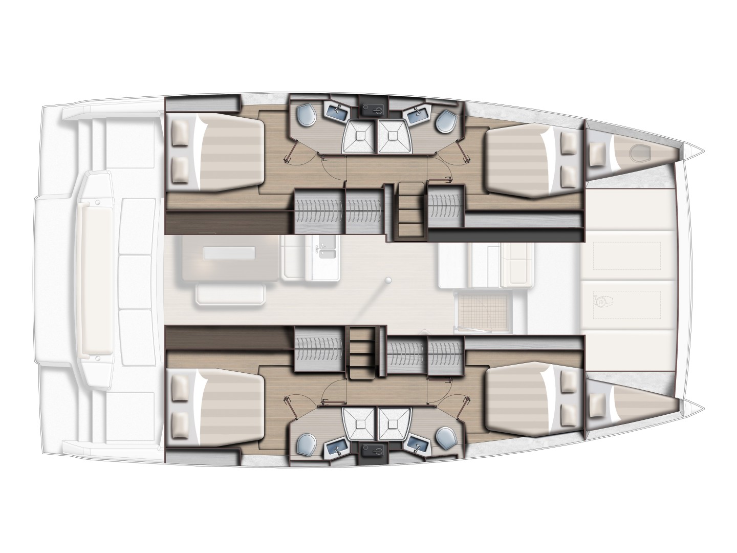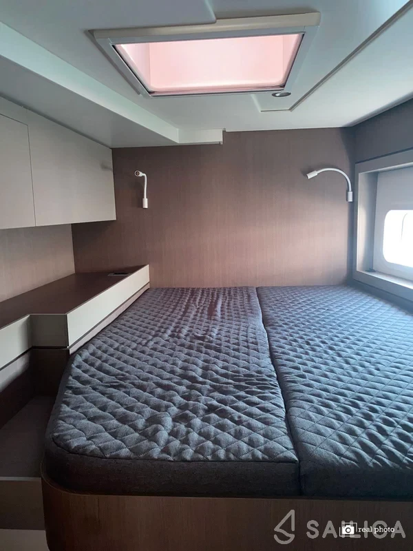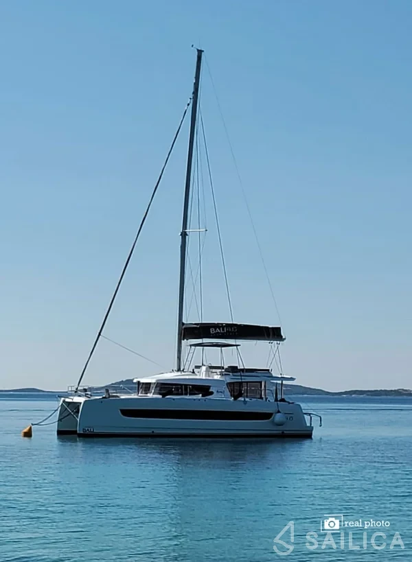 Bali 4.6 Moderna- A/C, Generator, WM, Solar Panel, BBQ Catamaran was produced in 2021, and is operated by the Aladar sail charter company. This luxurious vessel can comfortably accommodate up to 8 people, it contains 4 cabins and 4 WC. For your convenience, Bali 4.6 Moderna- A/C, Generator, WM, Solar Panel, BBQ is equipped with an Hot Water , Wind instrument , GPS Chartplotter, Coffee machine, Tender and much more.