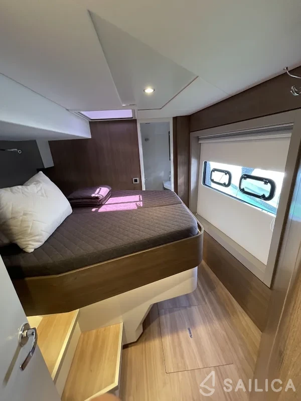 Bali 4.8 Sea pearl Catamaran was produced in 2023, and is operated by the JF Yachts charter company. This luxurious vessel can comfortably accommodate up to 12 people, it contains 6 cabins and 6 WC. For your convenience, Bali 4.8 Sea pearl is equipped with an Hydraulic gangway, Air condition, Electric toilet, Water maker, Chart plotter in cockpit and much more.