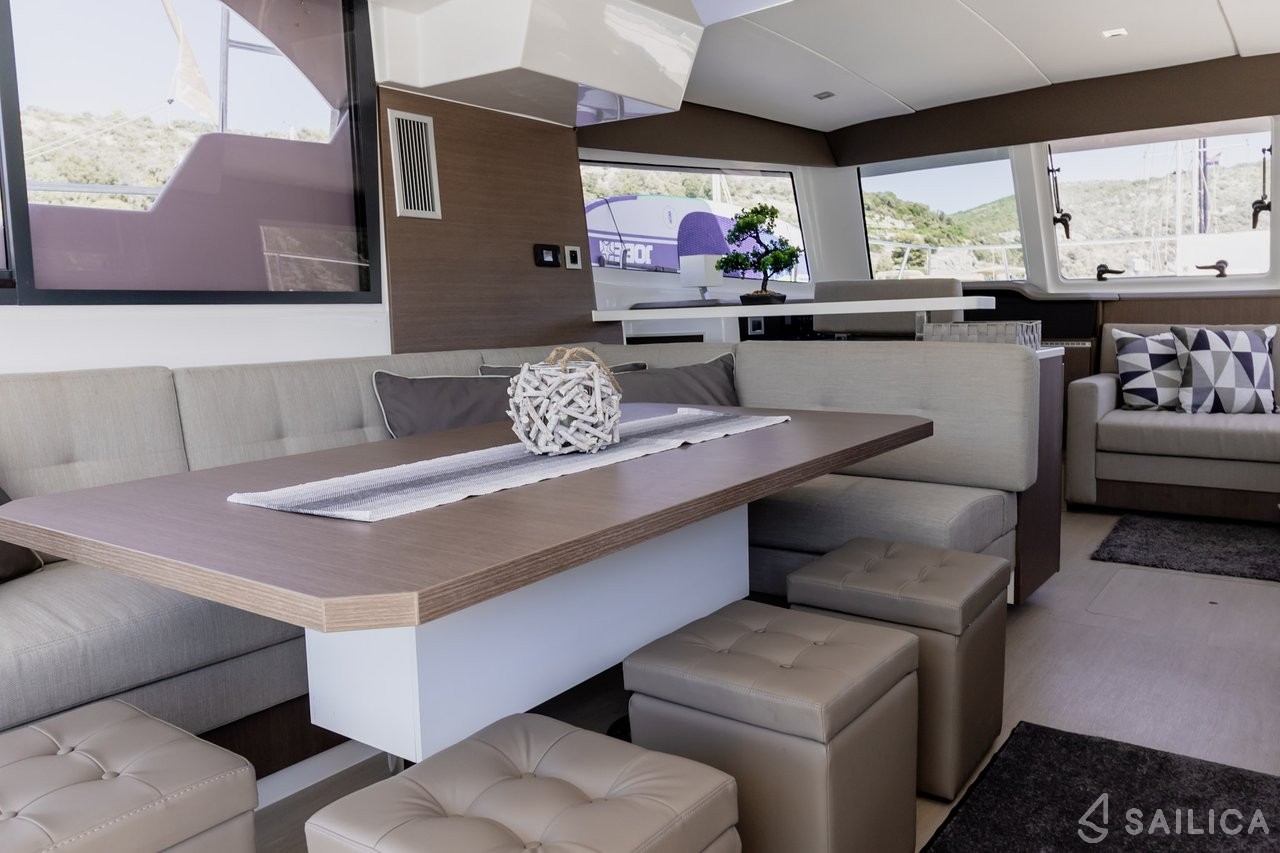 Bali Catspace MY Leila Catamaran was produced in 2022, and is operated by the Q-Yacht charter company. This luxurious vessel can comfortably accommodate up to 8 people, it contains 4 cabins and 4 WC. For your convenience, Bali Catspace MY Leila is equipped with an Sink, Hot Water , First aid kit, Life jackets, Oven and much more.