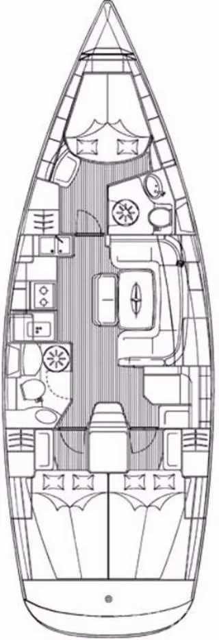 This yacht can comfortably accommodate up to 6 guests, it contains 3 cabins, and 2 WC (toilet).