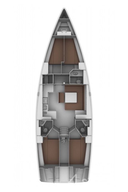 This yacht can comfortably accommodate up to 8 guests, it contains 4 cabins, and 3 WC (toilet).
