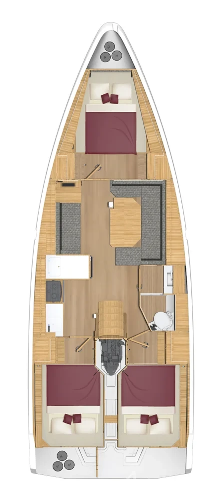 This yacht can comfortably accommodate up to 6 guests, it contains 3 cabins, and 1 WC (toilet).