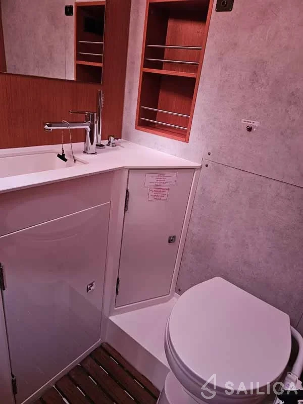 This yacht can comfortably accommodate up to 6 guests, it contains 3 cabins, and 2 WC (toilet).