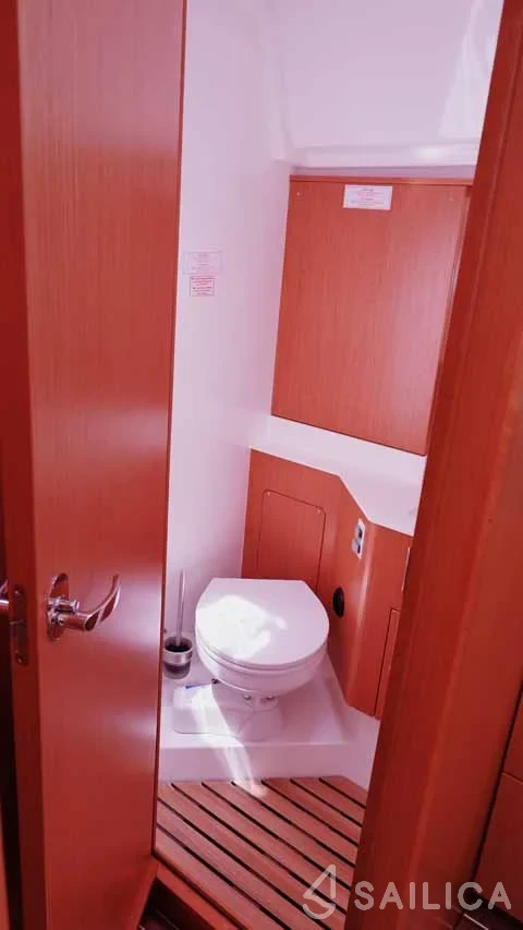 This yacht can comfortably accommodate up to 10 guests, it contains 5 cabins, and 3 WC (toilet).