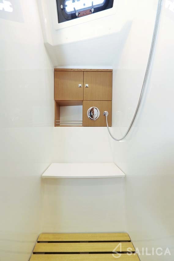 For your convenience, this boat features an Hot Water , Teak Cockpit, Windex, Windlass, Deck Shower.
