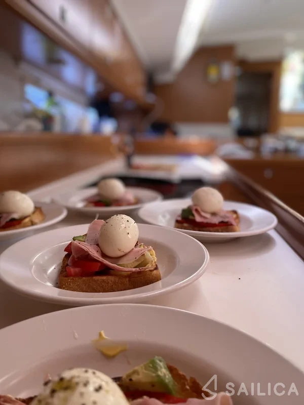 For your convenience, this boat features an Bathing platform, Teak Cockpit, Hydraulic gangway, Coffee machine, Boarding ladder.