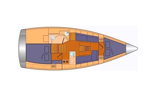 This yacht can comfortably accommodate up to 4 guests, it contains 2 cabins, and 1 WC (toilet).