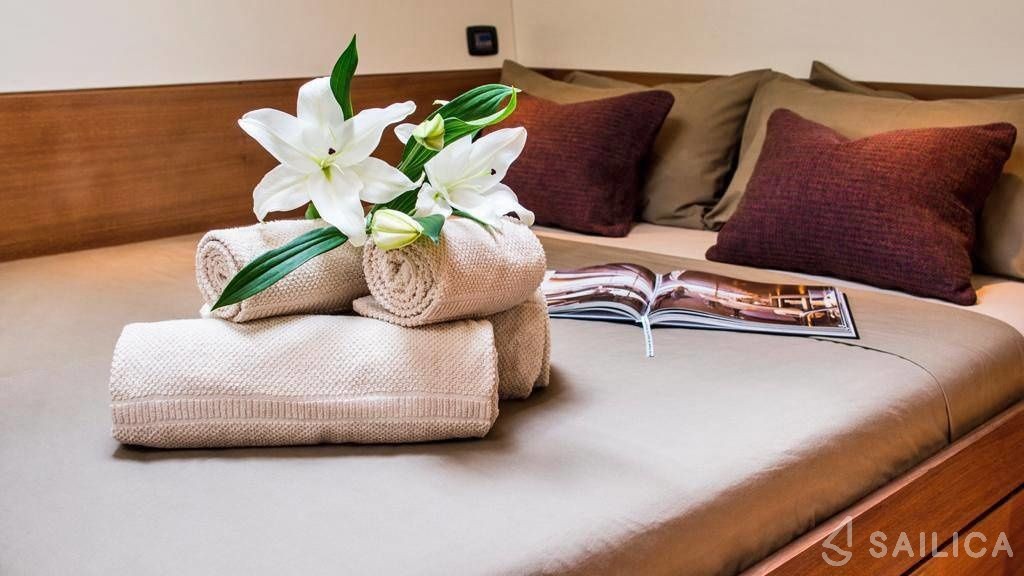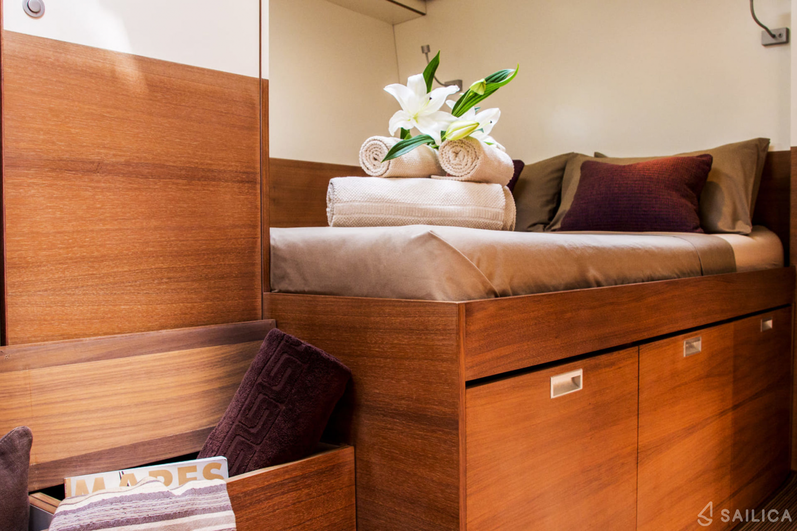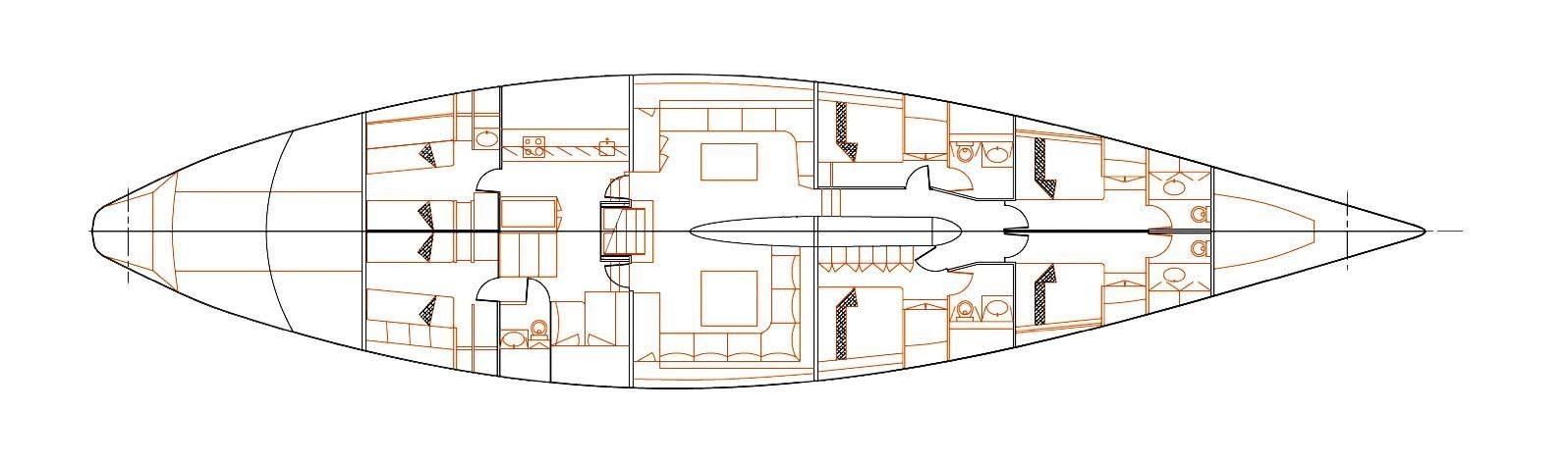 This yacht can comfortably accommodate up to 8 guests, it contains 4 cabins, and 4 WC (toilet).