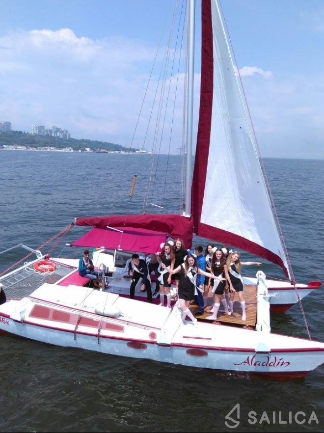 Custom Built Aladdin Catamaran was produced in 2012, and is operated by the Rentflot charter company. This luxurious vessel can comfortably accommodate up to 8 people, it contains 4 cabins and 1 WC. For your convenience, Custom Built Aladdin is equipped with an Sink, Pillows and blankets, Cooker, Outside shower, Kitchen utensils and much more.