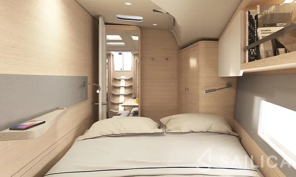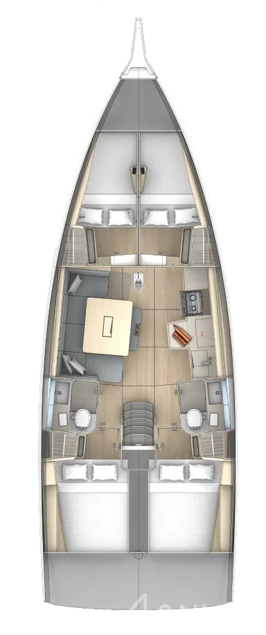 This yacht can comfortably accommodate up to 8 guests, it contains 4 cabins, and 2 WC (toilet).