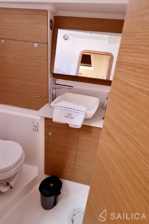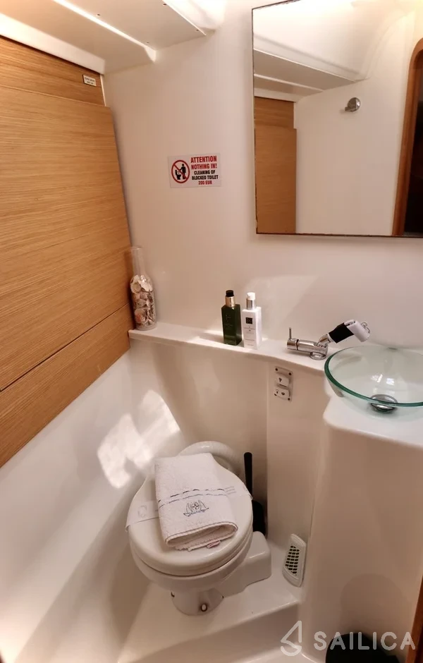This yacht can comfortably accommodate up to 8 guests, it contains 4 cabins, and 4 WC (toilet).