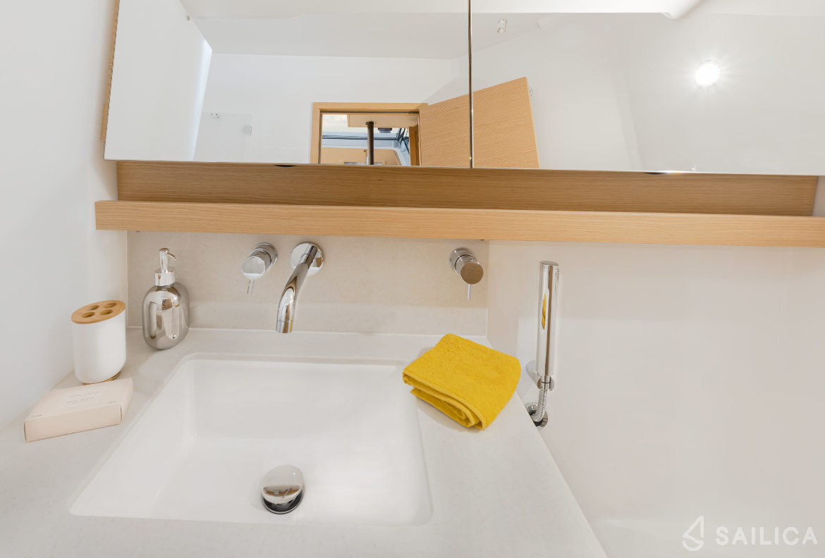 For your convenience, this boat features an Bathing platform, Sink, Oven, Pillows and blankets, Flat screen TV.