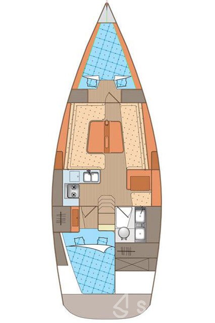 This yacht can comfortably accommodate up to 4 guests, it contains 2 cabins, and 1 WC (toilet).