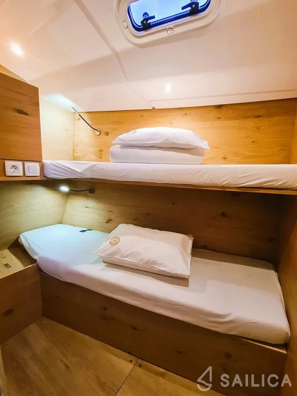This yacht can comfortably accommodate up to 8 guests, it contains 4 cabins, and 2 WC (toilet).