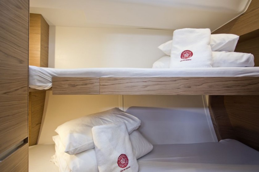 This yacht can comfortably accommodate up to 12 guests, it contains 6 cabins, and 2 WC (toilet).