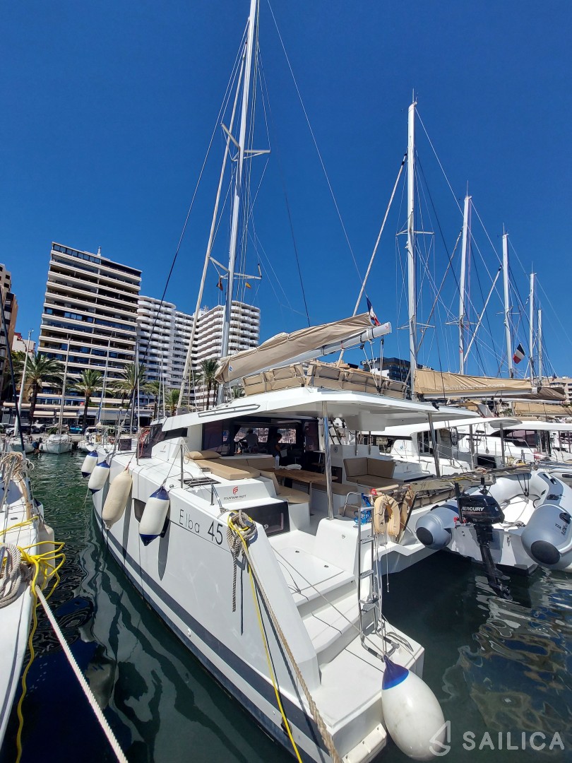Catamaran Elba 45 EVE is docked in the beautiful Marina Naviera Balear, and it is important to know that all rented vessels must be returned to the same location from which they were rented.