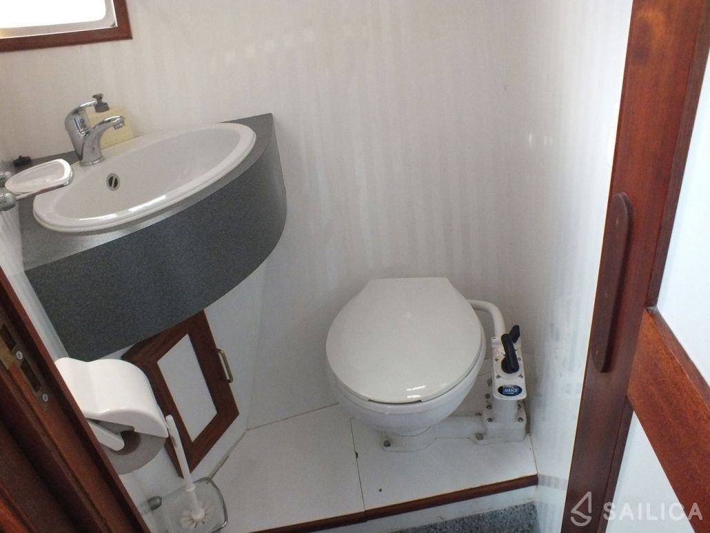 Falcon 100 Apollo has 2 cabins and can comfortably accommodate 4 people. It is conveniently equipped with 2 toilet (latrine),a Bathing platform, Sink, Microwave, Coffee machine, and Shower.