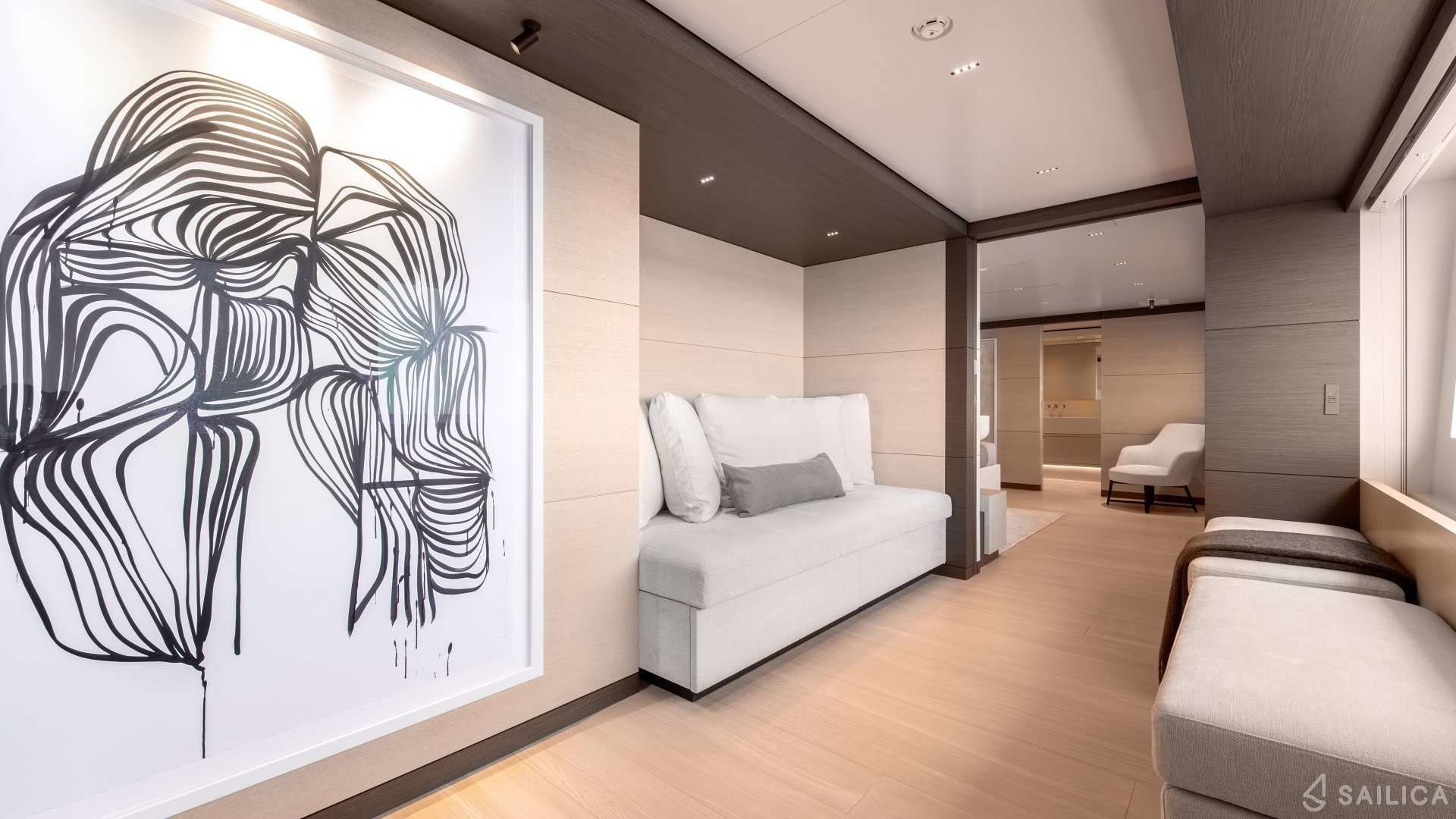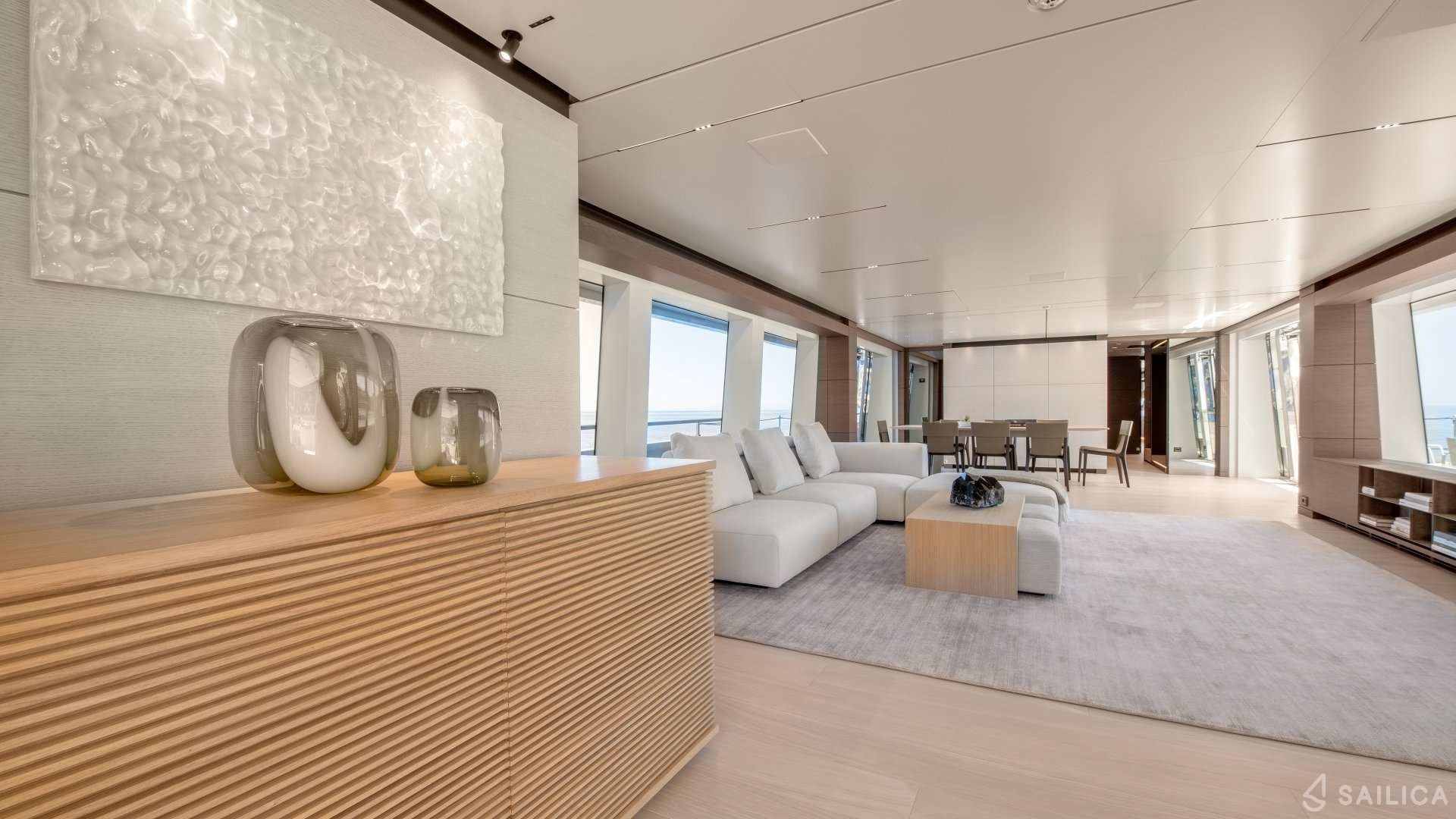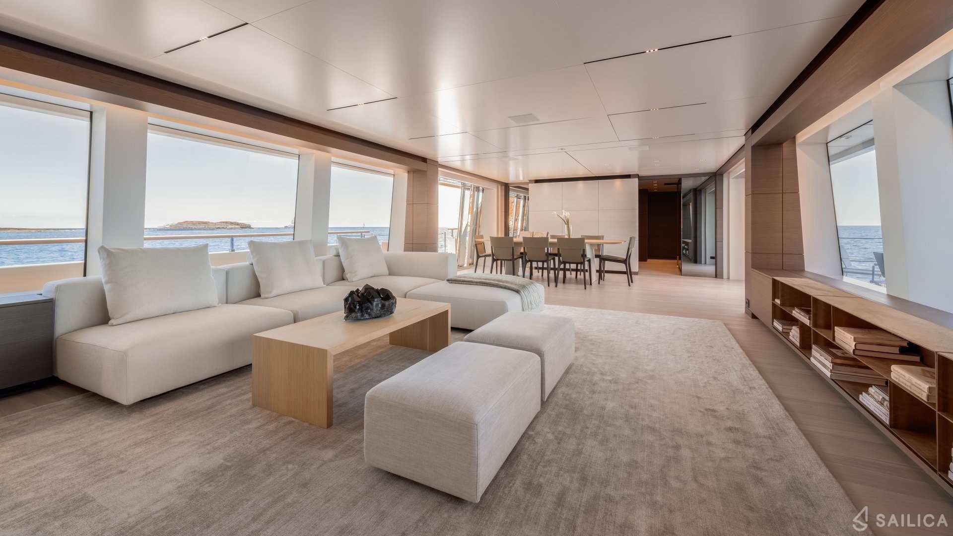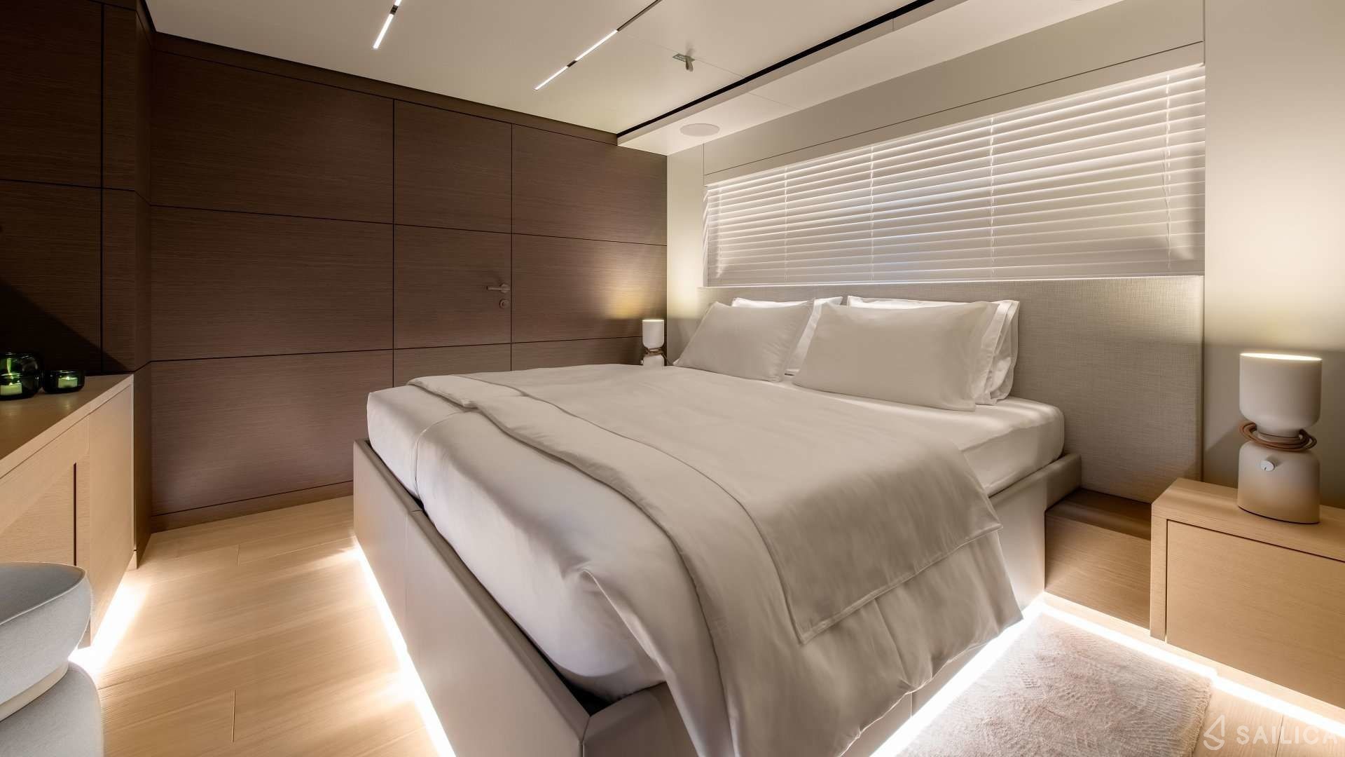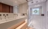 Ferretti Custom Line Navetta Sangha has 5 cabins and can comfortably accommodate 10 people. It is conveniently equipped with 5 toilet (latrine),a Bathing platform, Sink, Teak deck, Radar , and Dishwasher.