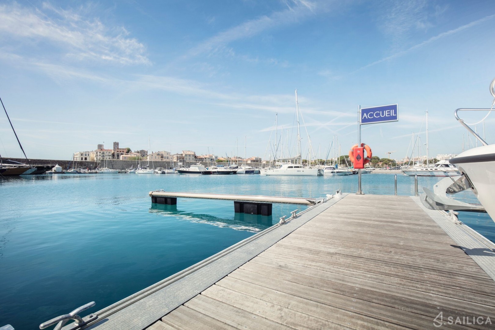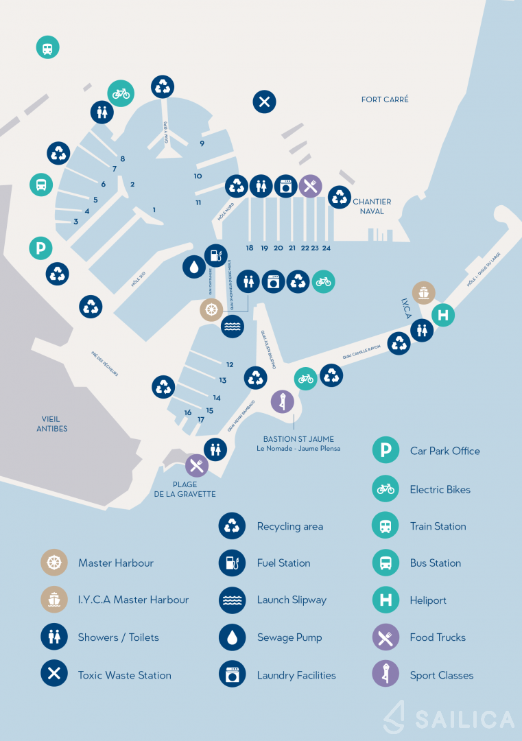 After completing your reservation of Ferretti Custom Line Navetta Sangha, you can make check-in and check out at the office of the charter company in Port Vauban Marina, France.