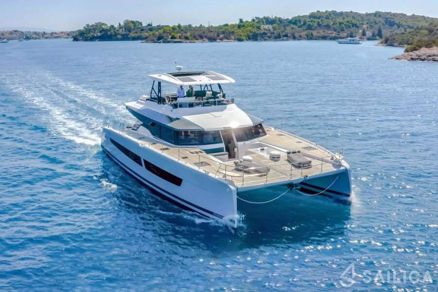 Fountaine Pajot Power 67 Ariva Catamaran was produced in 2023, and is operated by the Istion luxury Yachts charter company. This luxurious vessel can comfortably accommodate up to 14 people, it contains 7 cabins and 5 WC. For your convenience, Fountaine Pajot Power 67 Ariva is equipped with an Hydraulic gangway, Navigation lights, Towels, Kayak, Tender and much more.