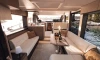 Galeon 440 Fly FGstar Mini has 3 cabins and can comfortably accommodate 6 people. It is conveniently equipped with 2 toilet (latrine),a Hot Water , Wind instrument , Teak Cockpit, Dishwasher, and Hydraulic gangway.