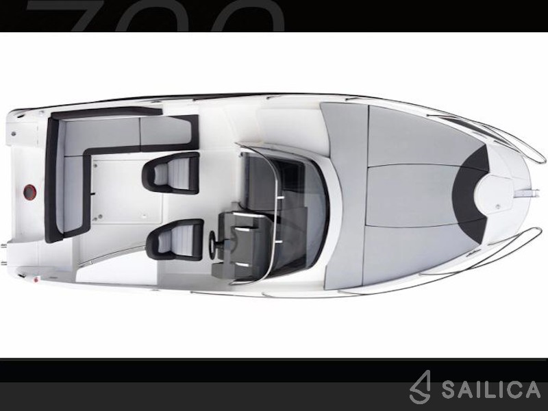Galeon Galia 700 Lana has 1 cabins and can comfortably accommodate 2 people. It is conveniently equipped with 1 toilet (latrine),a GPS, Life jackets, Fire extinguisher, Fenders, and Rev counter.