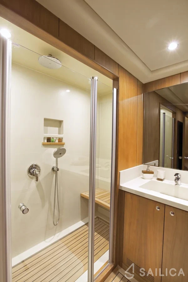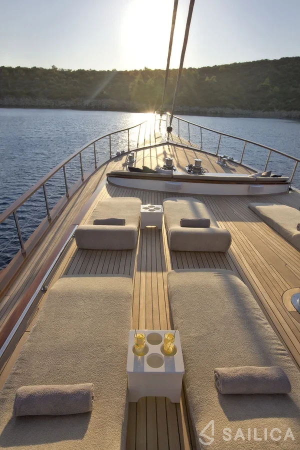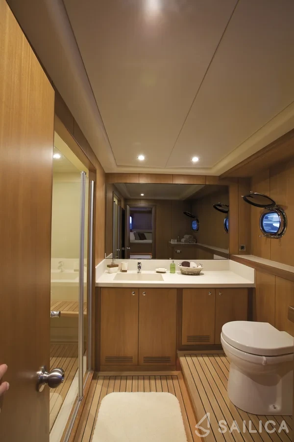 This yacht can comfortably accommodate up to 8 guests, it contains 4 cabins, and 4 WC (toilet).