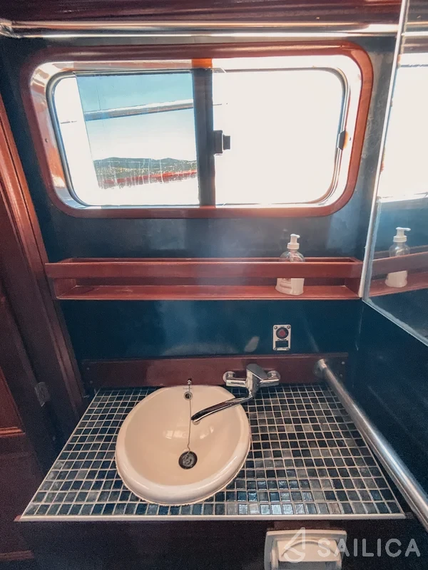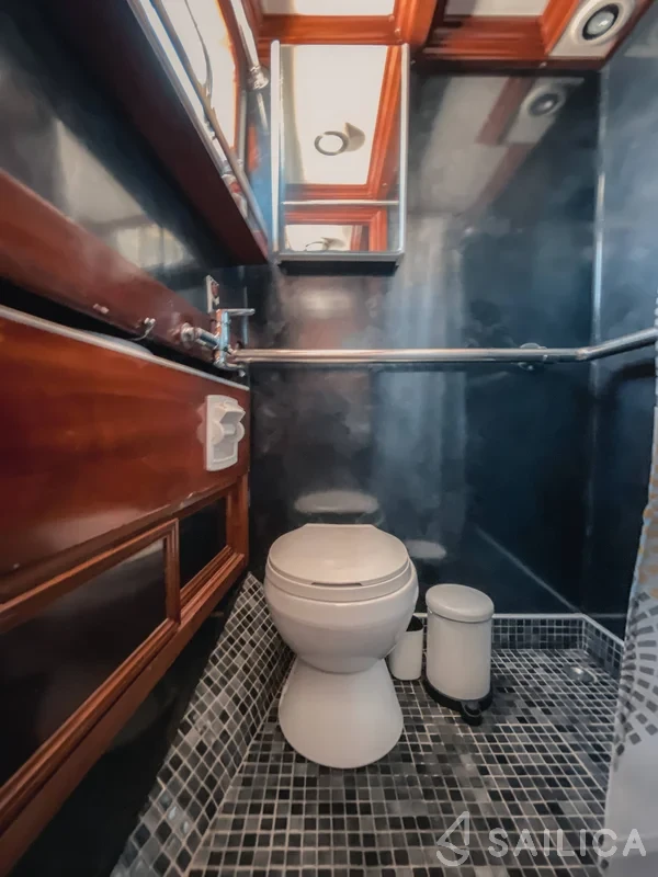 This yacht can comfortably accommodate up to 10 guests, it contains 5 cabins, and 5 WC (toilet).
