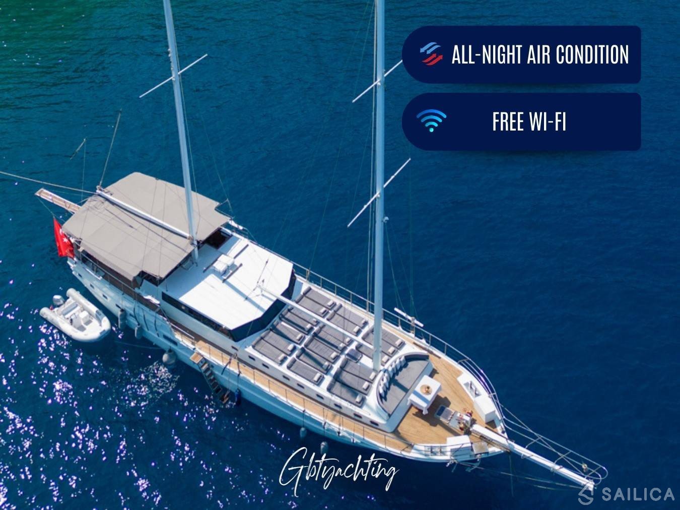 Gulet Tar Su is a beautiful gulet built in 1996. This gulet is operated by the GBT Yachting charter company and docked at Marina Gocek.