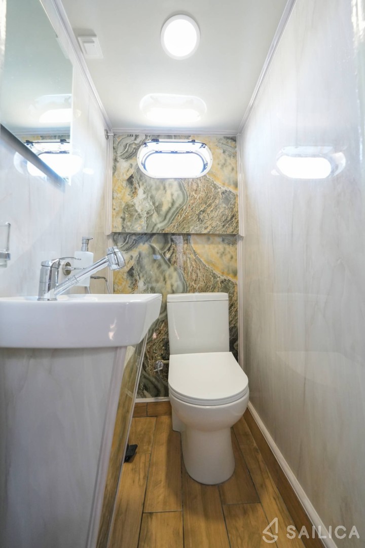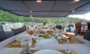 This yacht can comfortably accommodate up to 20 guests, it contains 10 cabins, and 10 WC (toilet).
