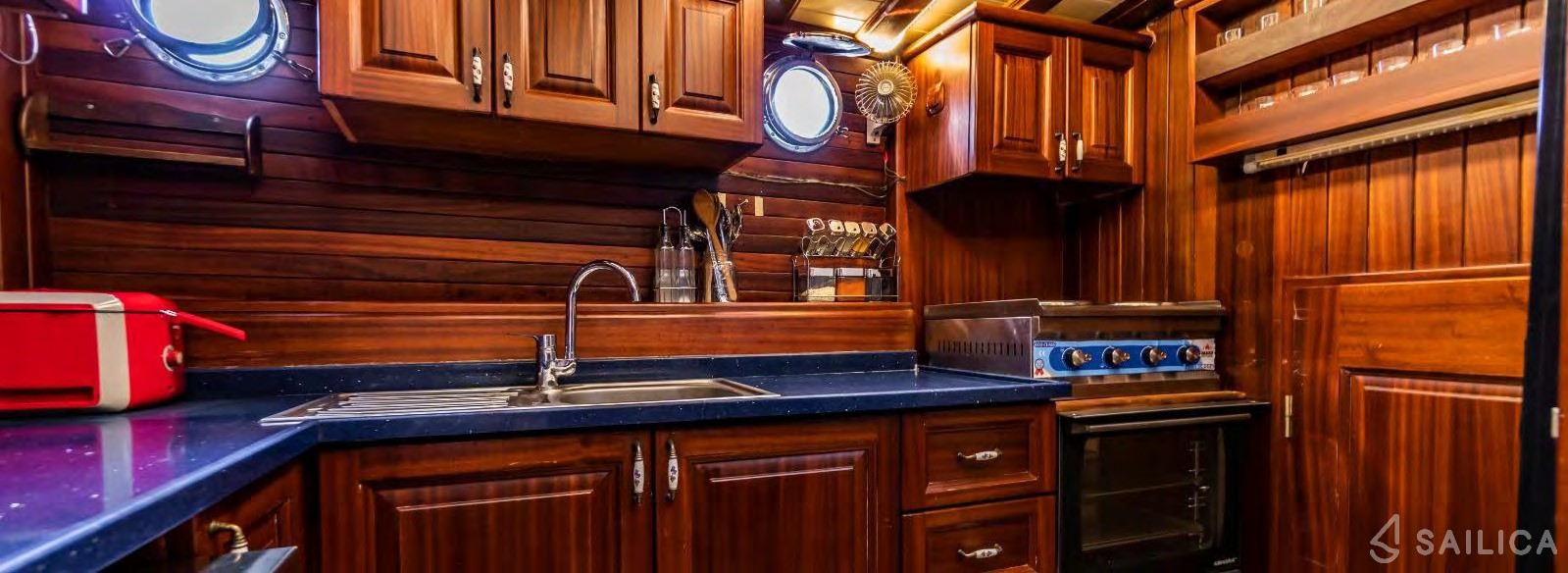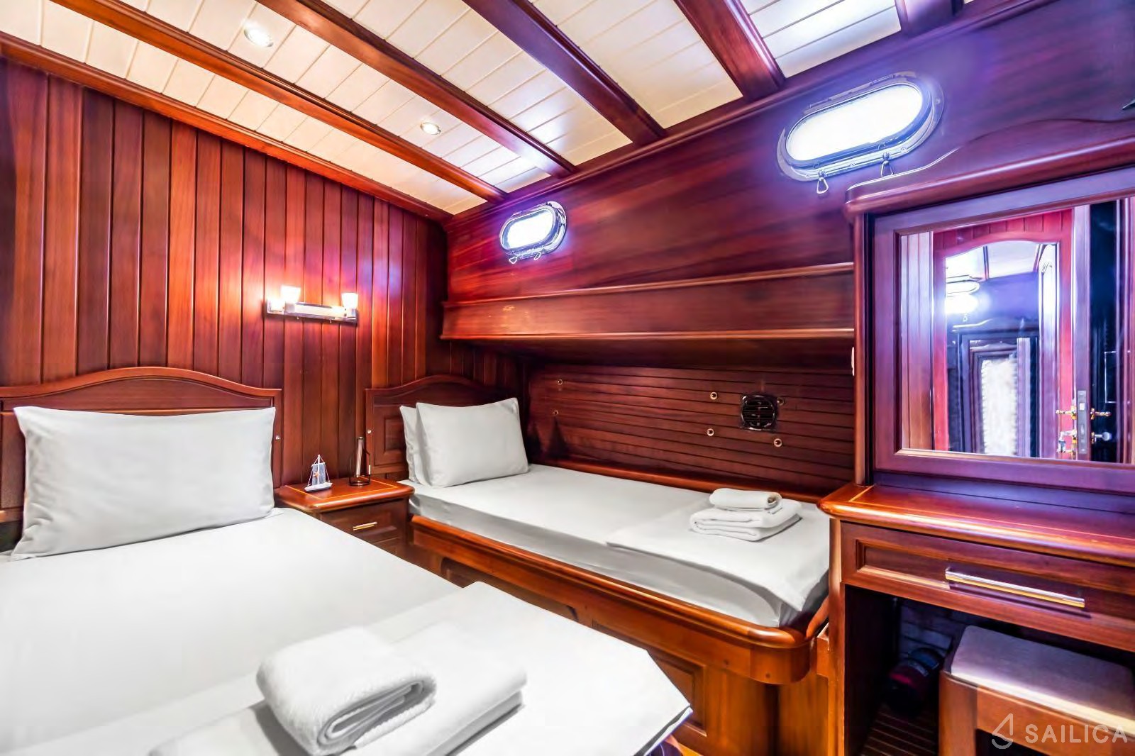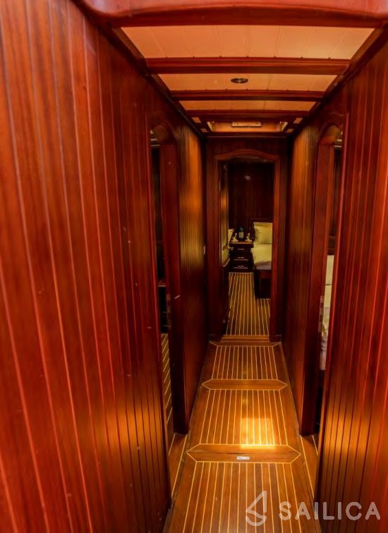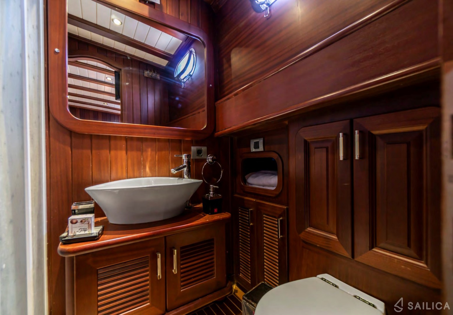 This yacht can comfortably accommodate up to 6 guests, it contains 3 cabins, and 3 WC (toilet).