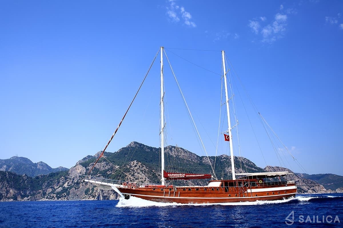 Gulet caferoglu 7 is a beautiful gulet built in 2007. This gulet is operated by the Golden Yachting charter company and docked at Netsel Marina.