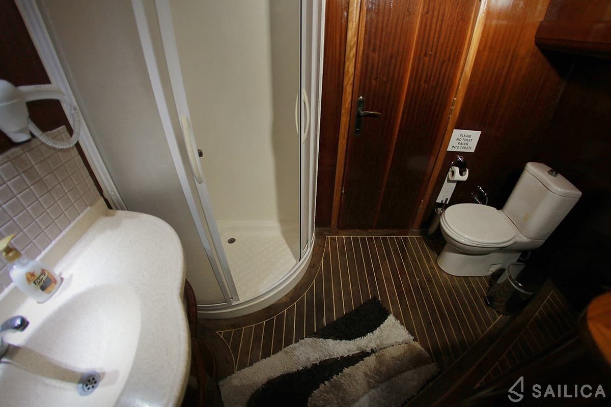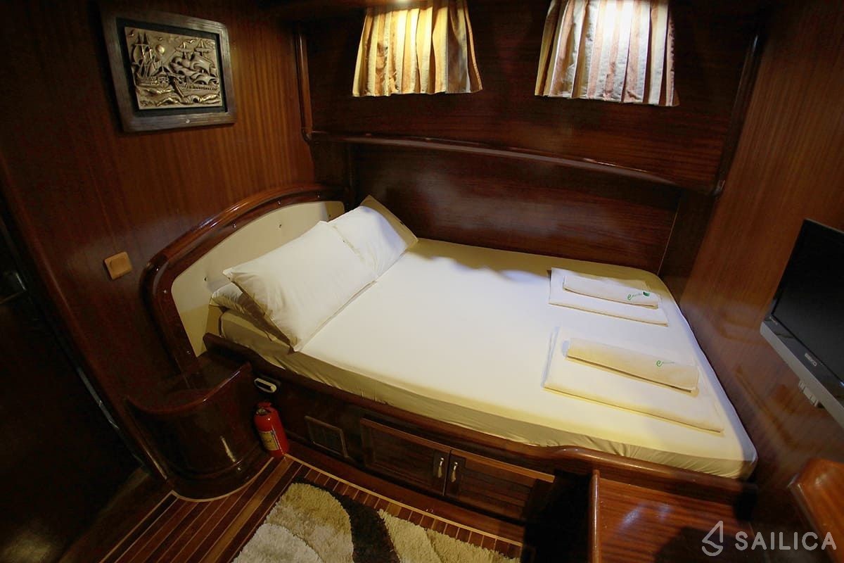 This yacht can comfortably accommodate up to 22 guests, it contains 11 cabins, and 11 WC (toilet).