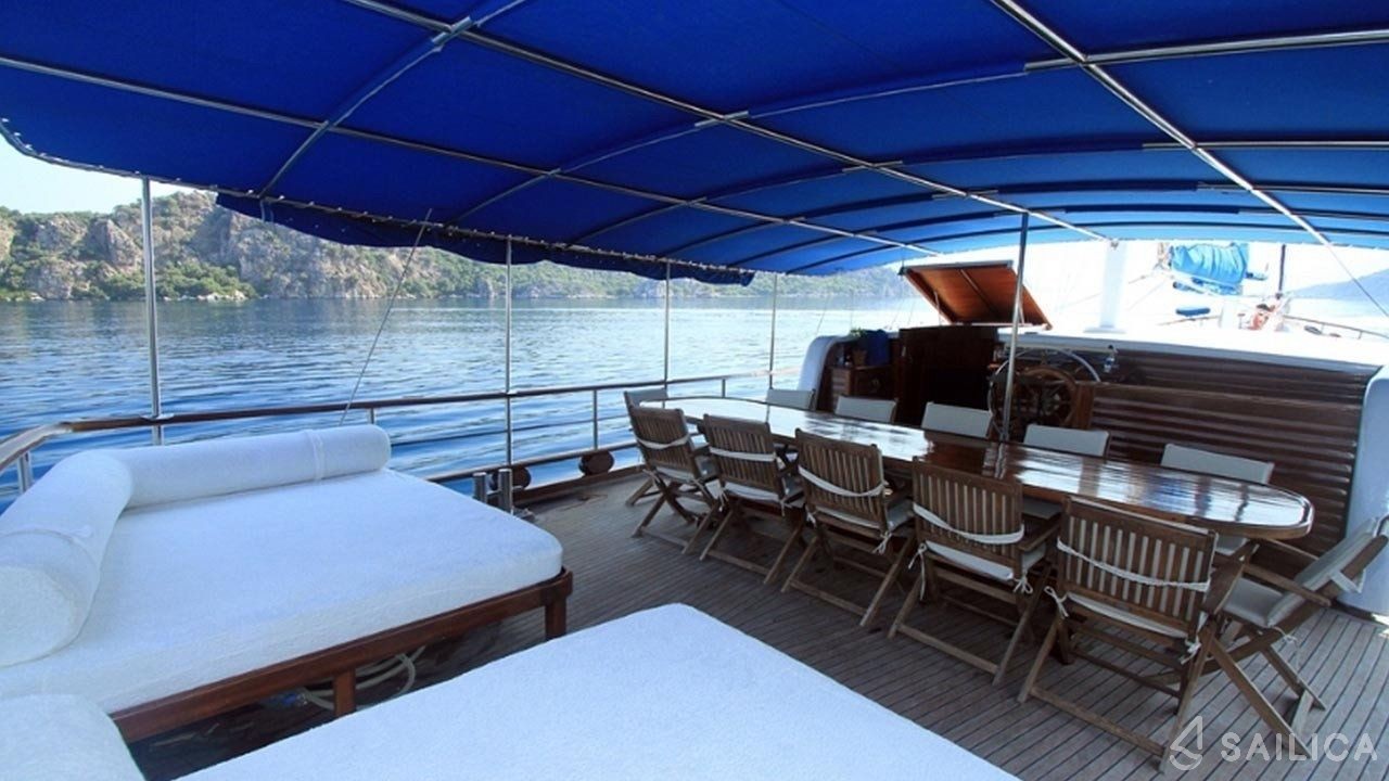 Gulet Gokce is a beautiful gulet built in 2002. This gulet is operated by the Gulet Broker Yachting charter company and docked at Netsel Marina.