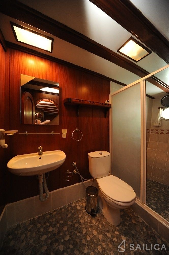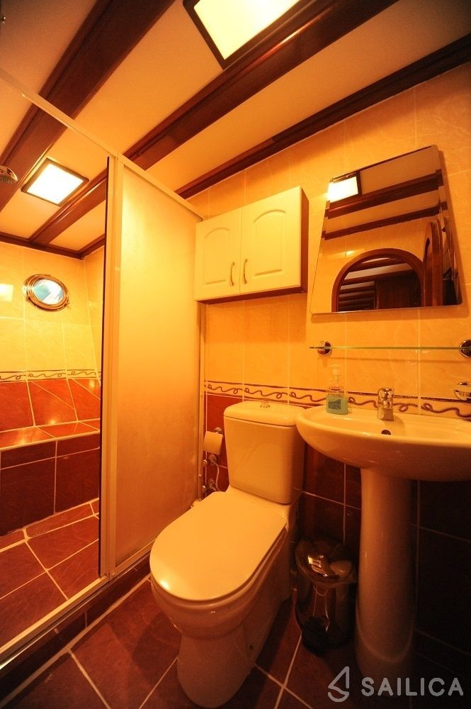 This yacht can comfortably accommodate up to 16 guests, it contains 8 cabins, and 6 WC (toilet).