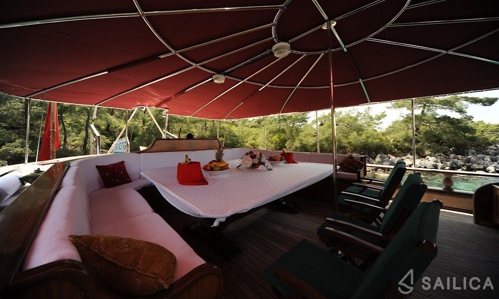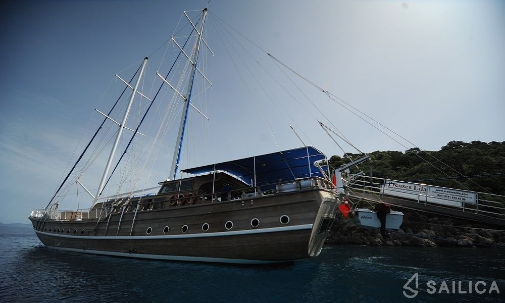 Gulet Prenses Lila is a beautiful gulet built in 2005. This gulet is operated by the 4U Yachting charter company and docked at Marina Fethiye.