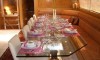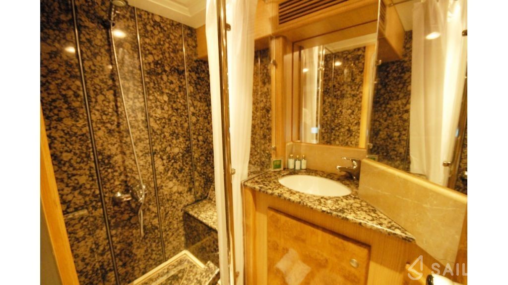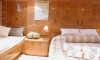 This yacht can comfortably accommodate up to 12 guests, it contains 6 cabins, and 7 WC (toilet).